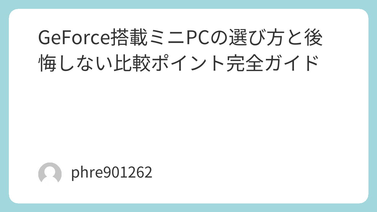 GeForce搭載ミニPCは、省スペース性と性能のバランスを求める人に向いた選択肢です。価格や拡張性では不利な面もありますが、設置のしやすさ、見た目のすっきり感、毎日の扱いやすさは強い魅力があります。
