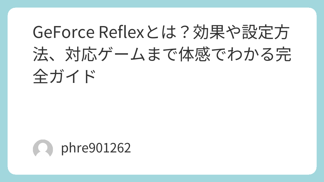 GeForce Reflexとは?効果や設定方法、対応ゲームまで体感でわかる完全ガイド