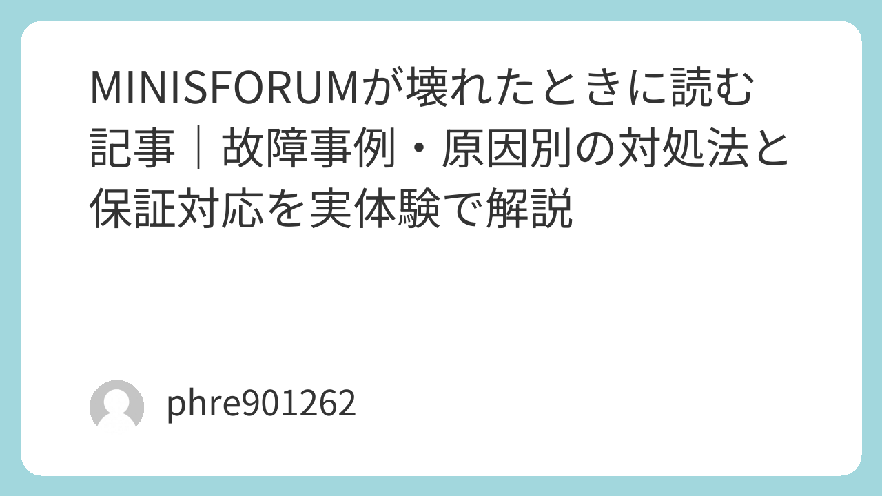 この記事では、MINISFORUMが壊れたと感じたときに確認したいポイント、実際によくある故障パターン、そしてサポートに進む前にやるべきことを、体験ベースを交えながら整理していきます。