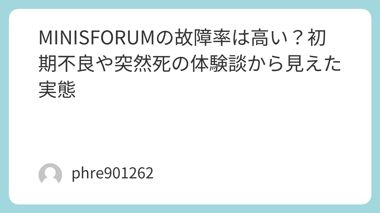 実際のところ、MINISFORUMに関して、メーカーが公表している明確な故障率データは見当たりません。つまり、「何%で壊れる」と断定できる数字はありません。その一方で、購入者の体験談をたどっていくと、ある程度の傾向は見えてきます。特に多いのは、初期不良、使用開始から数か月から1年半前後での突然死、そして故障そのもの以上にサポート体験への不満です。