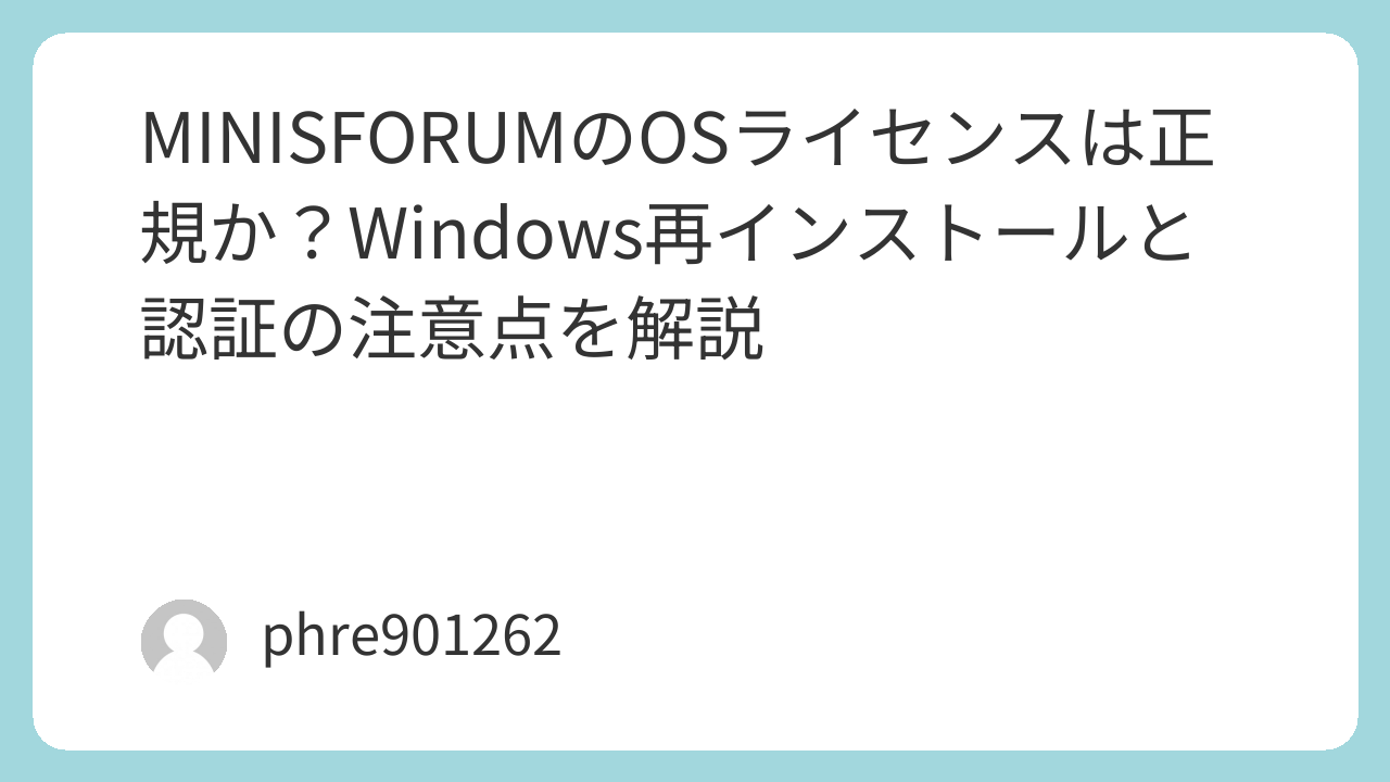 MINISFORUMのミニPCを調べていると、性能や静音性より先に「OSライセンスは大丈夫なのか」が気になって検索する人は少なくありません。とくに小型PCのジャンルは価格の差が大きく、同じような見た目の製品でも、初期状態のOSや認証まわりの安心感に差があるためです。実際、購入検討の記録を読むと、スペック比較よりも先に「長く使っても不安が残らないか」を重視して候補を絞り込んでいる人が見つかります。そうした流れの中で、MINISFORUMは“安いだけのミニPC”としてではなく、ライセンス面まで含めて見られているメーカーだとわかります。 (Minisforum)