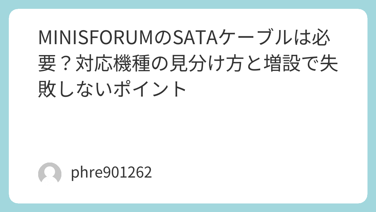 容量不足を解消するための増設は、うまくいけば快適性が大きく変わります。反対に、ケーブル選びを軽く見ると、ストレージを買ったのに使えないという遠回りになりがちです。MINISFORUMのSATAケーブルを探しているなら、まずは型番確認と付属品確認。この基本を押さえるだけでも、増設の成功率はかなり上がります。