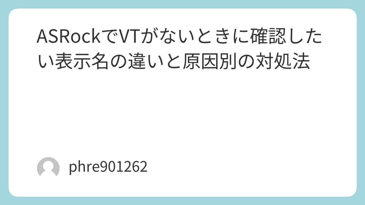 ASRockでVTがないときは、焦らず名称と環境を切り分ければ見えてくる