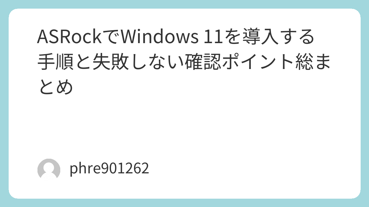 ASRockマザーボードで自作PCを組んだ直後や、既存環境からWindows 11へ移行したい場面では、先に土台を整えておくかどうかで作業の楽さが大きく変わります。実際に触っていて最初につまずきやすいのは、インストールそのものよりも、その前段階の設定不足でした。