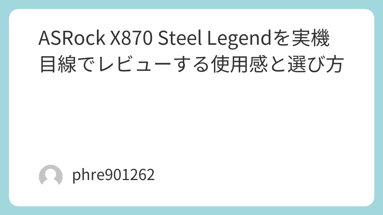 ASRock X870 Steel Legendは、見た目の良さだけでなく、組みやすさ、安定性、拡張性のバランスが取れた完成度の高いマザーボードでした。実際に触ってみると、スペック表だけでは伝わりにくい“使いやすさ”がじわじわ効いてきます。