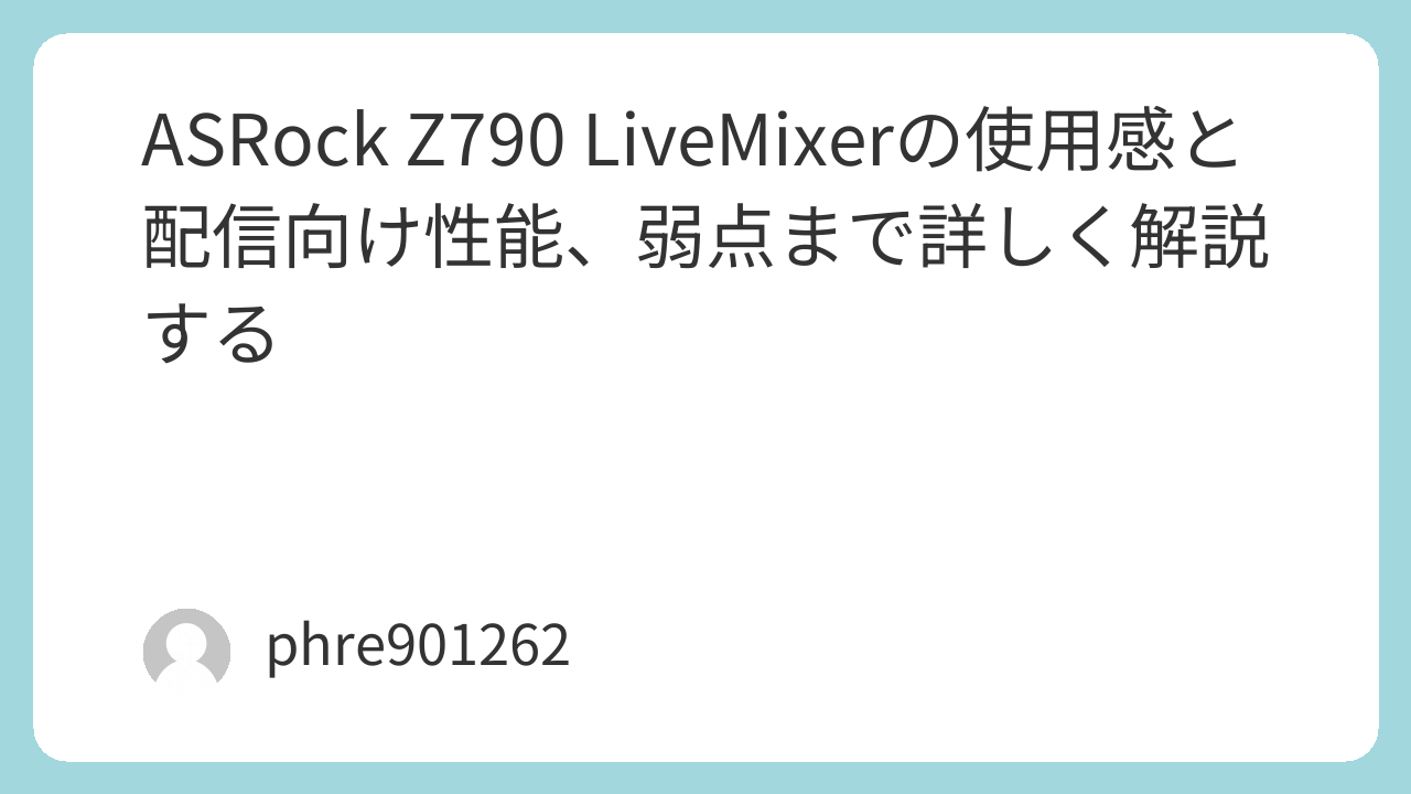 スペックだけでは見えにくい実用性を求めるなら、ASRock Z790 LiveMixerは十分に選ぶ価値があります。ゲーム用としても、配信用としても、そして多機材運用を前提にした1台としても、個性と実益を両立しやすい一枚です。
