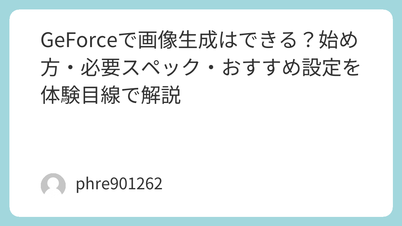 GeForceで画像生成したい人が最初に知っておくべきこと