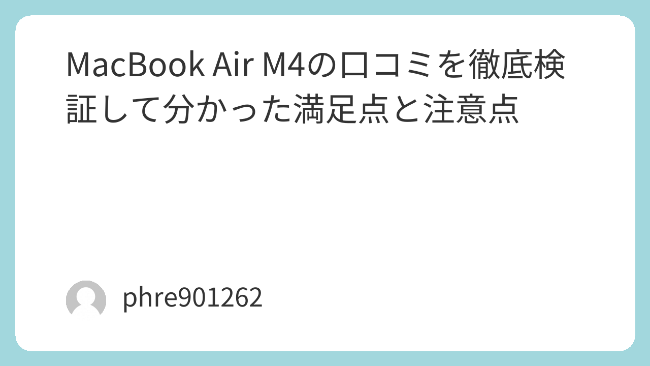 口コミ全体を踏まえると、MacBook Air M4は“軽くて静かで、毎日気持ちよく使えるノートPC”を求める人に特に向いています。持ち歩きやすさ、バッテリー持ち、動作の軽快さを重視するなら、満足しやすい一台です。
