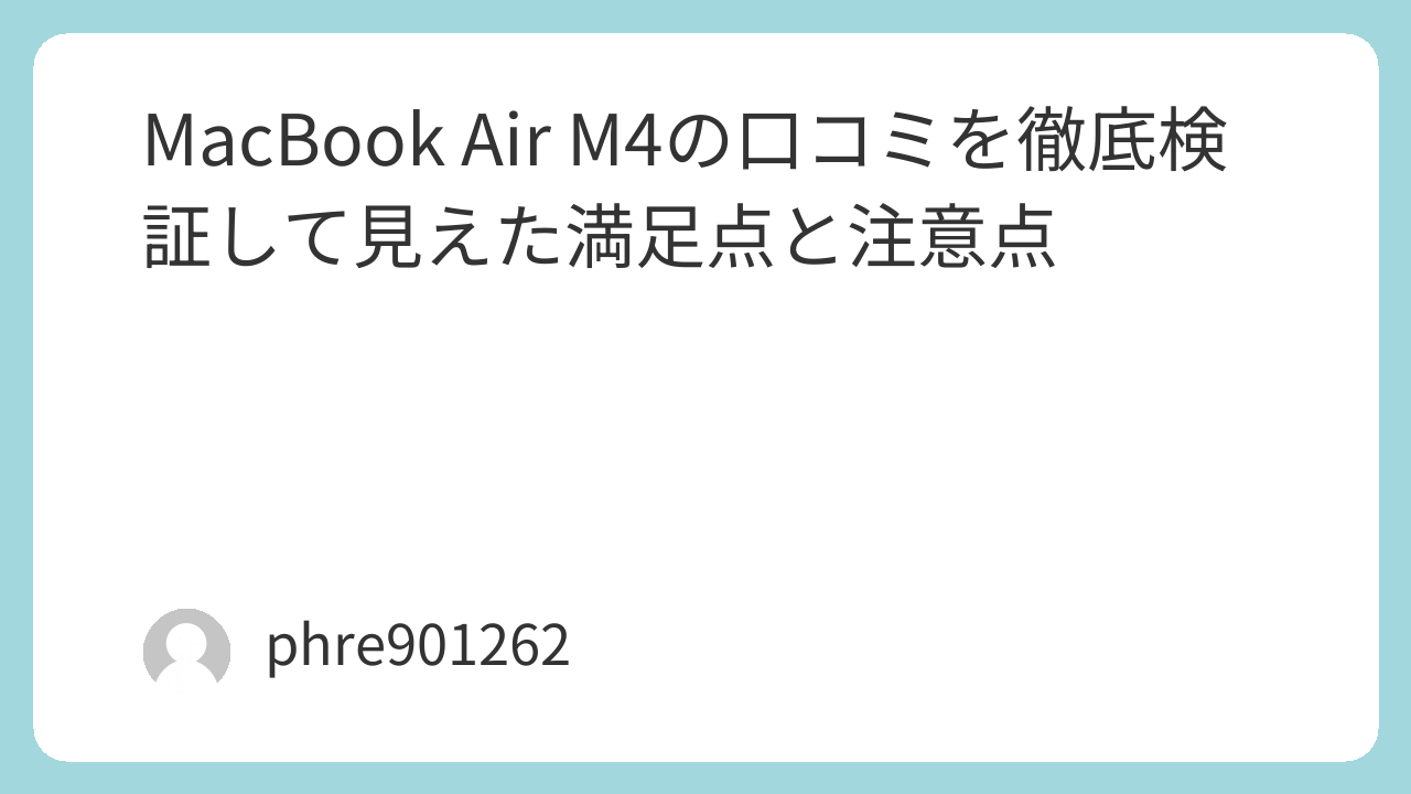 そのため、口コミを読むときは、書き手がどんな用途で使っているかを見ることが重要です。自分の使い方と近い人の感想ほど参考になります。MacBook Air M4は万能に見えても、最適解は人によって変わります。