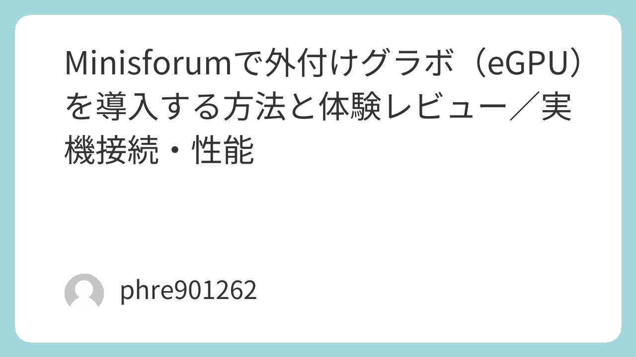 Minisforumの外付けGPUドッキングステーションを利用することで、ミニPCでもデスクトップ並みの性能を実現することができました。特に、3Dゲームや高解像度の動画編集においてその効果を実感でき、作業の効率が大幅に向上しました。しかし、接続手順や初期設定に少し注意が必要であり、事前に情報を集めておくことをおすすめします。