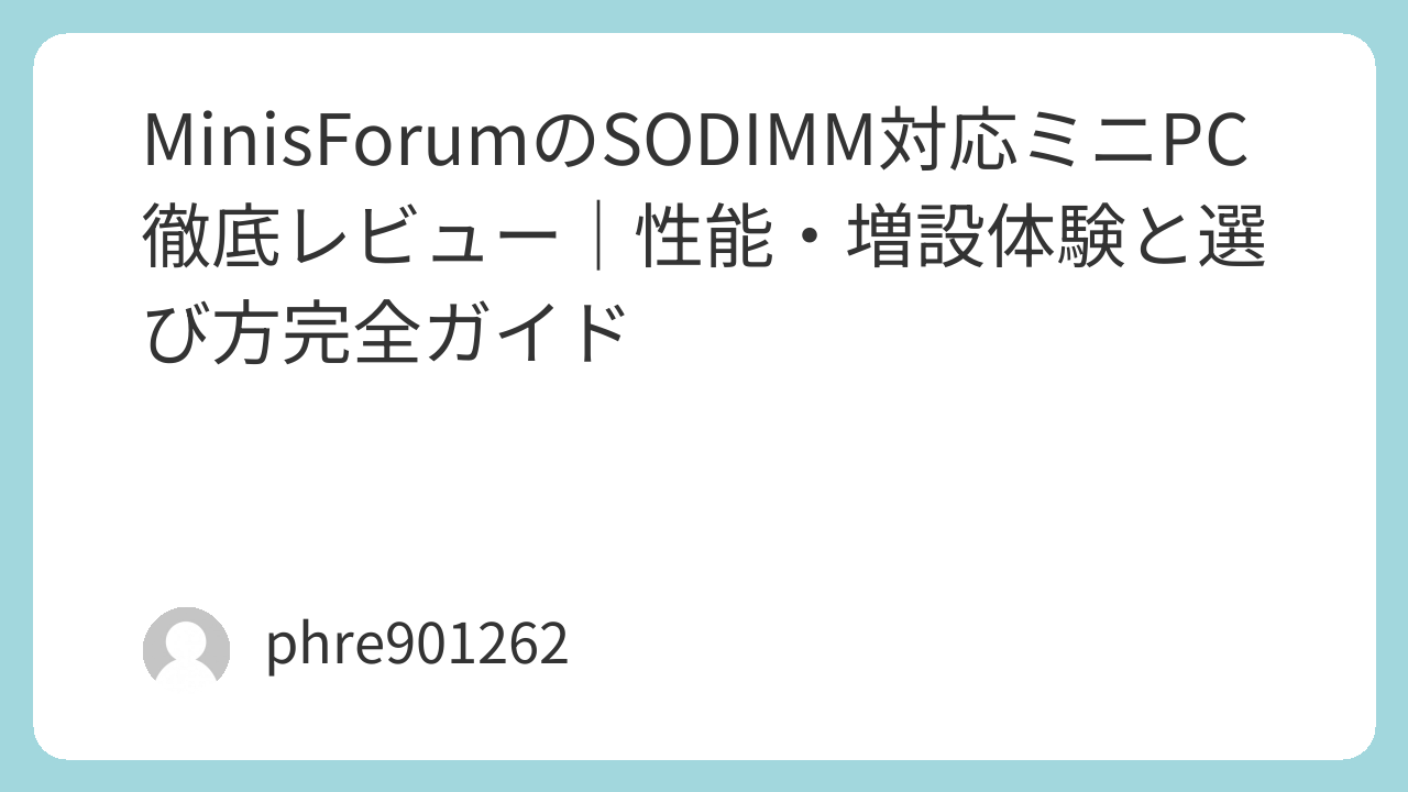 MinisForumのSODIMM対応ミニPCは、メモリ増設が容易で、パフォーマンス向上に直結します。特に動画編集や仮想環境を使う場合、SODIMMスロットを活用することで、PCがより高い処理能力を発揮できるようになります。実際に増設を行ってみて、作業の快適さが大幅に向上したことに驚きました。MinisForumは、手軽に高性能なPCを求める方に最適な選択肢を提供しています。