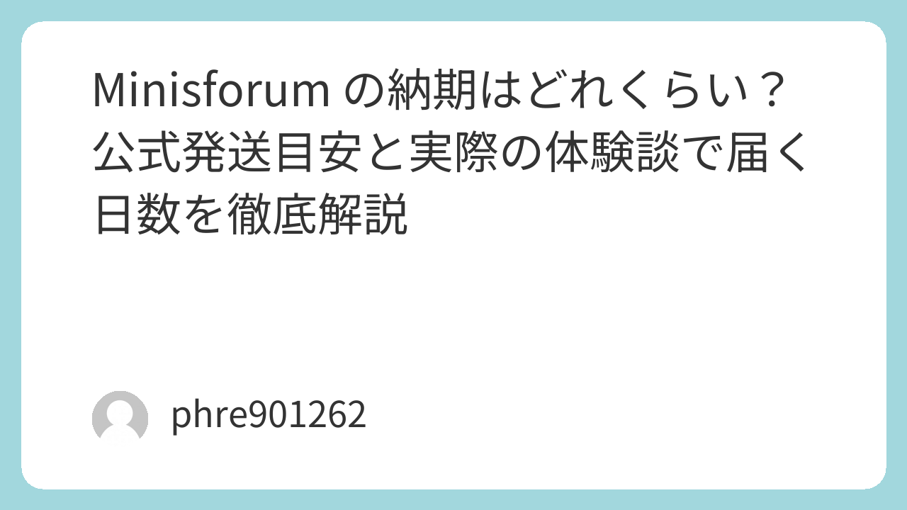 ミニPCの中でも注目を集めている Minisforum。そのコンパクトなサイズと高い性能が魅力ですが、気になるのは「納期」。公式サイトで提供されている納期目安だけではなく、実際に購入した方々の体験談を交え、納期に関するリアルな情報をお届けします。納期の目安や、注文から到着までにかかった日数、遅延の原因など、購入前に知っておくべきことを徹底的に解説します。