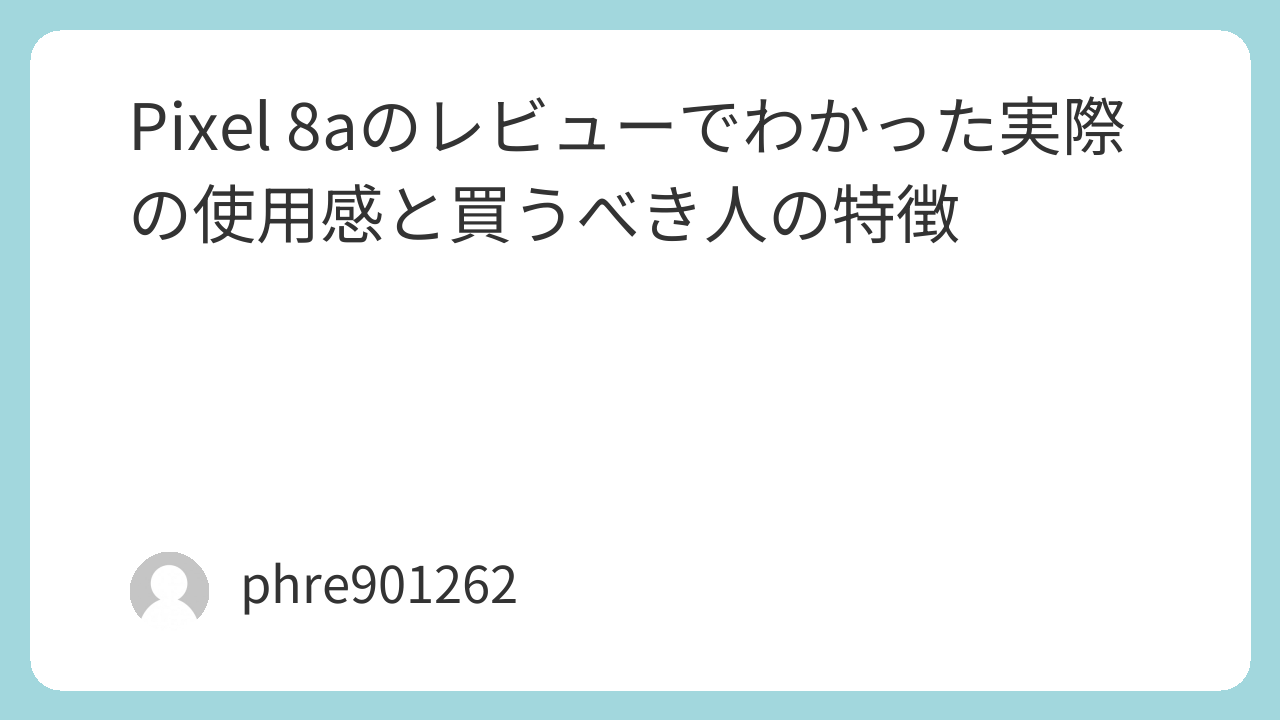 また、スマホに極端な尖りよりも、全体の使いやすさを求める人にも合います。画面、動作、持ちやすさ、カメラ、防水、長く使う安心感。こうした要素を総合して見たとき、Pixel 8aは非常にまとまりがよく、失敗しにくい選択肢だと感じました。