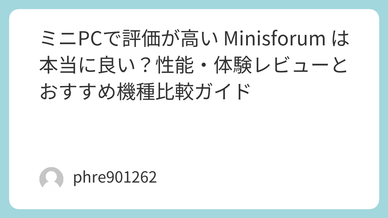 近年、ミニPCの需要が急増しています。その中でも注目されているのが「Minisforum」というブランドです。Minisforumは、コンパクトなデザインでありながらも高い性能を誇るミニPCを提供しています。デスクトップPCに比べて省スペースで、持ち運びやすく、性能も多くの用途に対応できるという点が魅力です。この記事では、MinisforumのミニPCの特徴や、実際に使用したユーザーの体験談を交えつつ、その良さを詳しく解説します。