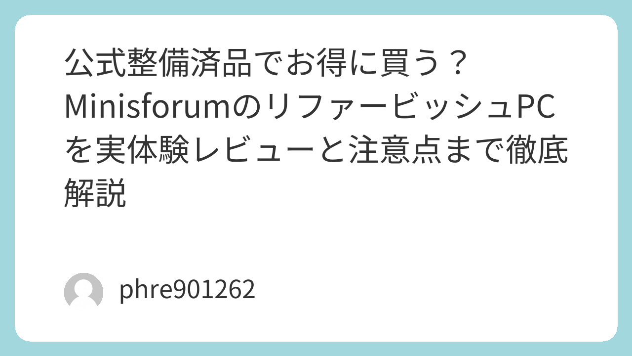 Minisforumのリファービッシュ品は、価格と性能のバランスが取れた製品であり、品質もしっかりと保たれています。購入前にしっかりとスペックや保証条件を確認すれば、大きなリスクなく購入できるでしょう。