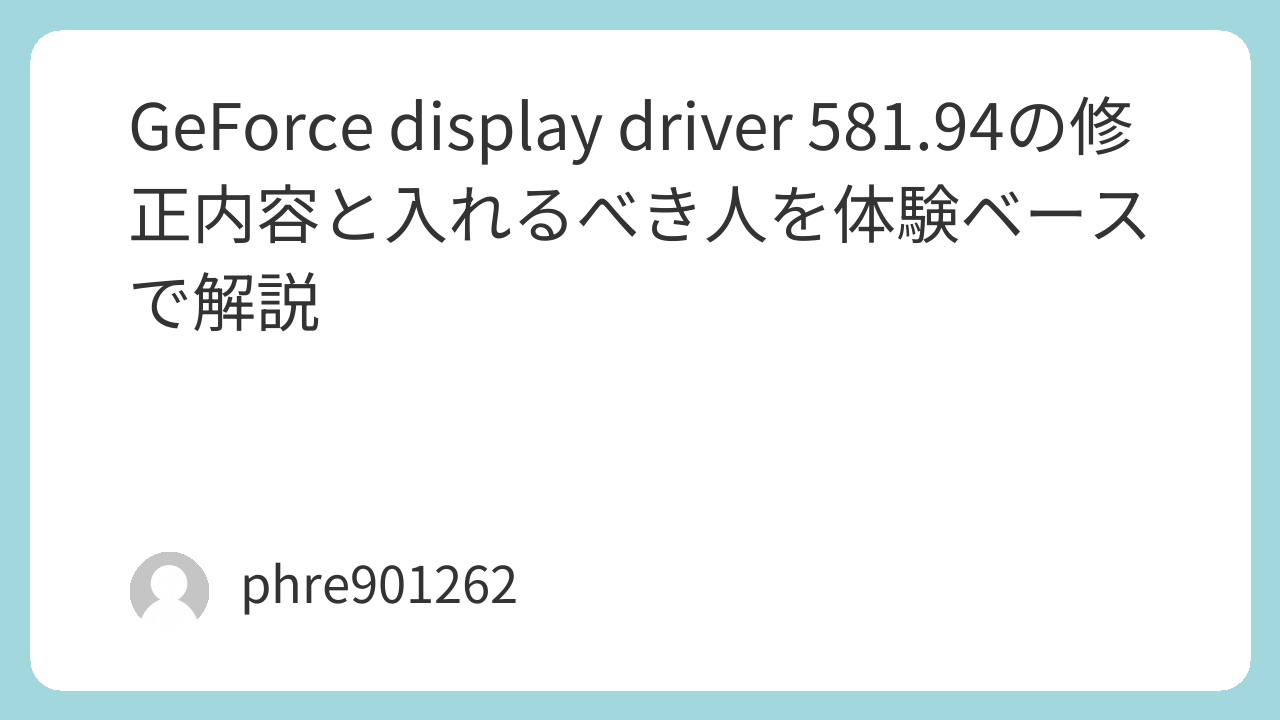 ただ、今回の581.94は「不具合を増やすための更新」ではなく「目の前の性能低下を戻すための更新」という性格が強いので、症状が一致している人は試す価値が高いと感じます。