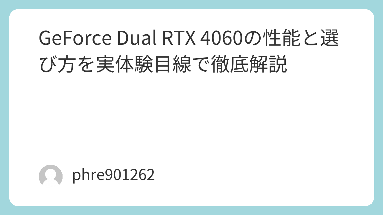 GeForce Dual RTX 4060の性能と選び方を実体験目線で徹底解説