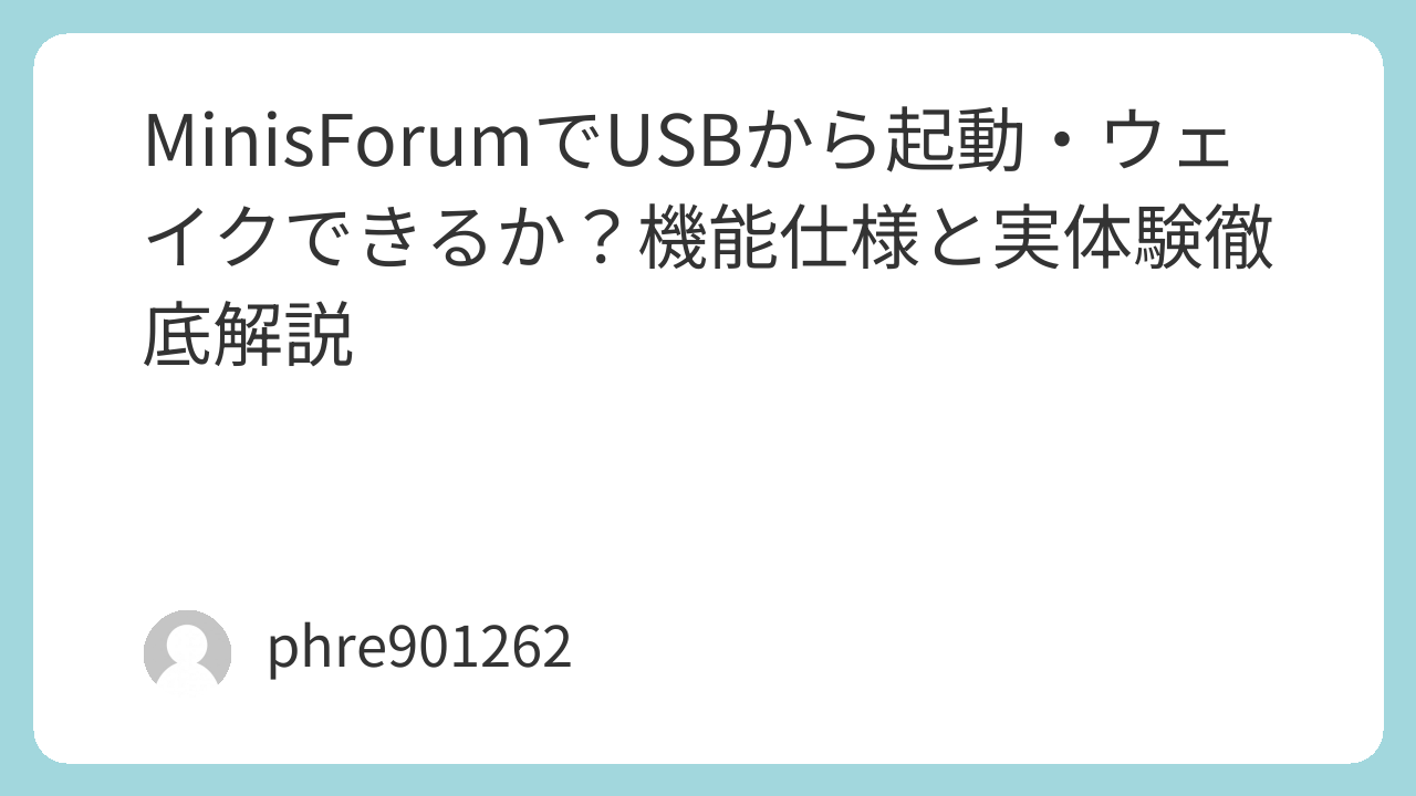 - MinisForumの多くのモデルでは、USBからの起動(Wake on USB)は未対応または難しい。