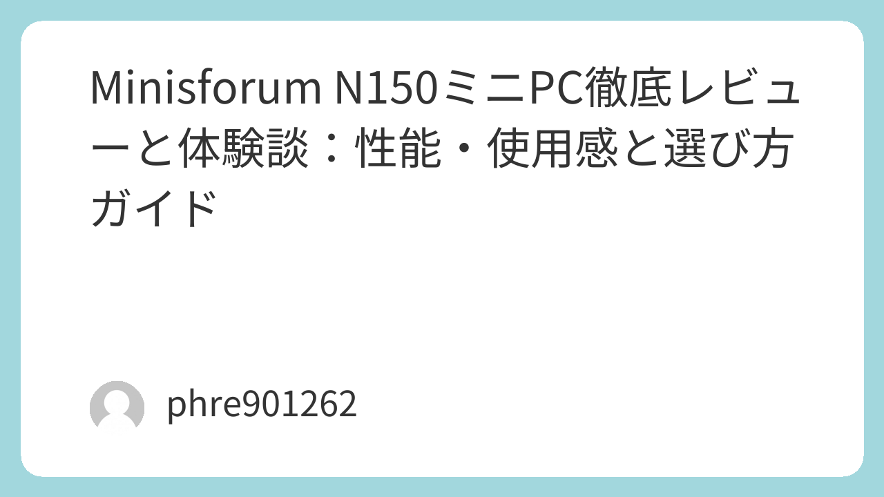 Minisforum N150ミニPCは、コスパ重視のライト〜ミドルユーザーに最適です。デスクトップPCとしての基本性能を抑えつつ、コンパクトで場所を取らず、静音性と省電力性を兼ね備えています。特に、オフィス作業や動画視聴、軽い開発用途に使いたい方におすすめの一台です。