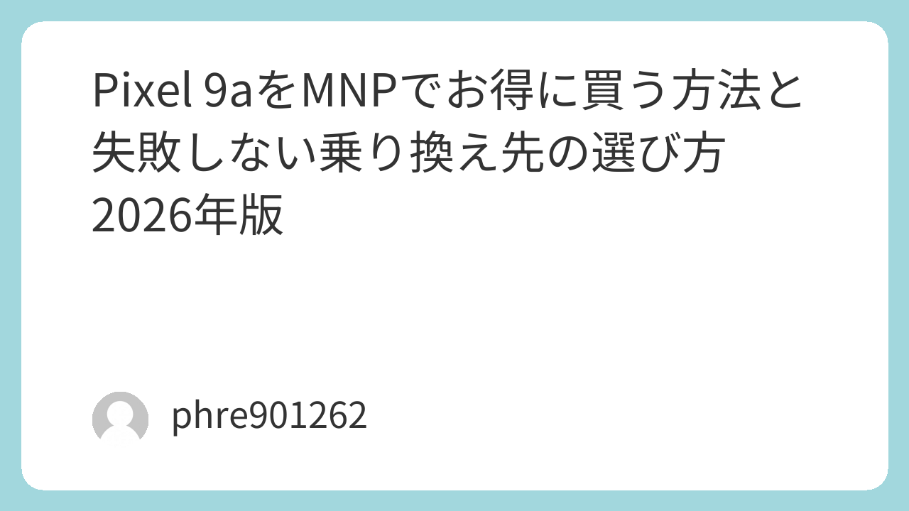 Pixel 9aをMNPでお得に買う方法と失敗しない乗り換え先の選び方2026年版