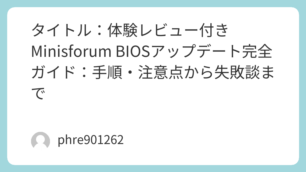 Minisforum の BIOS アップデートは、システムの安定性やセキュリティ向上に貢献しますが、注意深く手順を守る必要があります。特にトラブルに遭遇した場合の対処方法をあらかじめ知っておくことで、冷静に対処できるようになります。アップデート後は必ず確認を行い、問題がないか確認することが大切です。