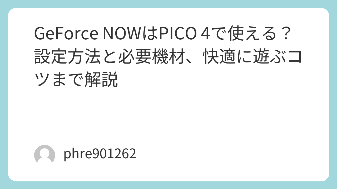 PICO 4とGeForce NOWの組み合わせは、思っているより現実的です。しかも今は公式対応が進み、セットアップ情報も整理されてきました。向いているのは、高性能PCなしで大作を大画面で遊びたい人、机に座らず気軽にゲームへ入りたい人です。反対に、ネイティブなPCVR体験やSteamVR中心の遊び方を求めるなら、PICO Connect系のほうが満足しやすい。目的さえ間違えなければ、この組み合わせはかなり面白い選択肢になります。 (NVIDIA サポート)
