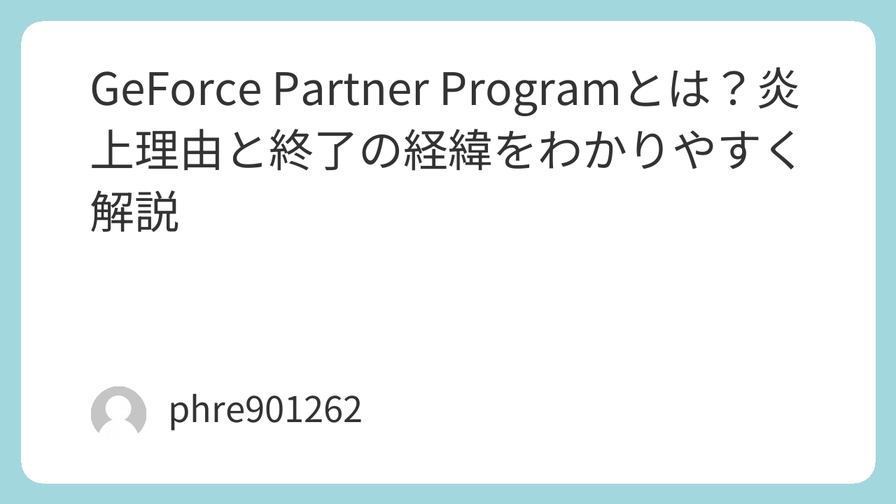 導入では、まず「geforce partner program」を検索する人の多くが、いま使える現行制度を探しているのではなく、過去にNVIDIAが実施したGPPが何だったのか、なぜここまで批判されたのか、そして最終的にどう終わったのかを知りたい層だと押さえます。GPPは2018年3月に案内され、同年5月にはNVIDIA自身が終了を発表しており、短期間ながら強い議論を呼んだテーマです。 (ウィキペディア)