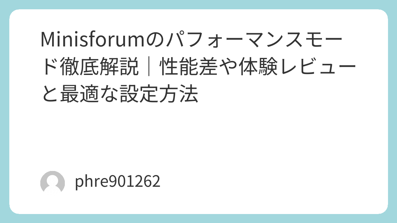 MinisforumのミニPCには、性能を最大限に引き出すための「パフォーマンスモード」が搭載されています。このモードは、単にCPUクロックを上げるだけでなく、電力の制御や冷却の効率にも影響を与えるため、用途に応じて使い分けることで、より快適な使用が可能になります。今回は、実際の体験を交えて、パフォーマンスモードの使い方やその効果について解説します。