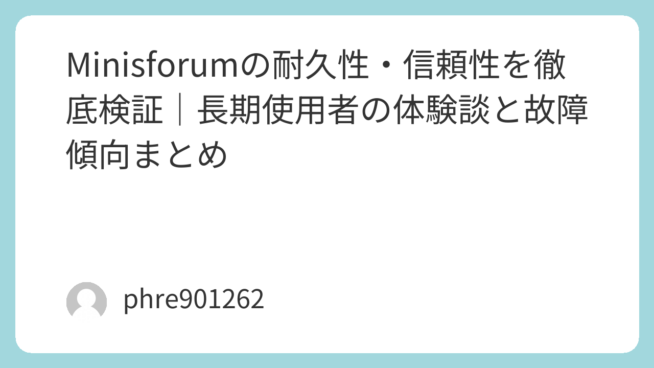 ただし、Minisforumは価格が非常に競争力があり、高性能なPCを手軽に手に入れたいユーザーには十分に耐久性が期待できる製品となっています。