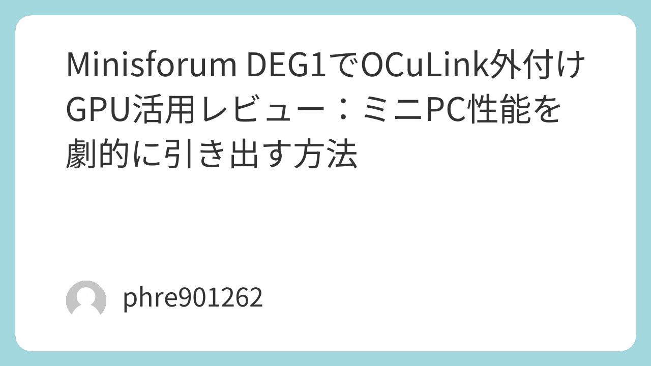 Minisforum DEG1でOCuLink外付けGPU活用レビュー:ミニPC性能を劇的に引き出す方法