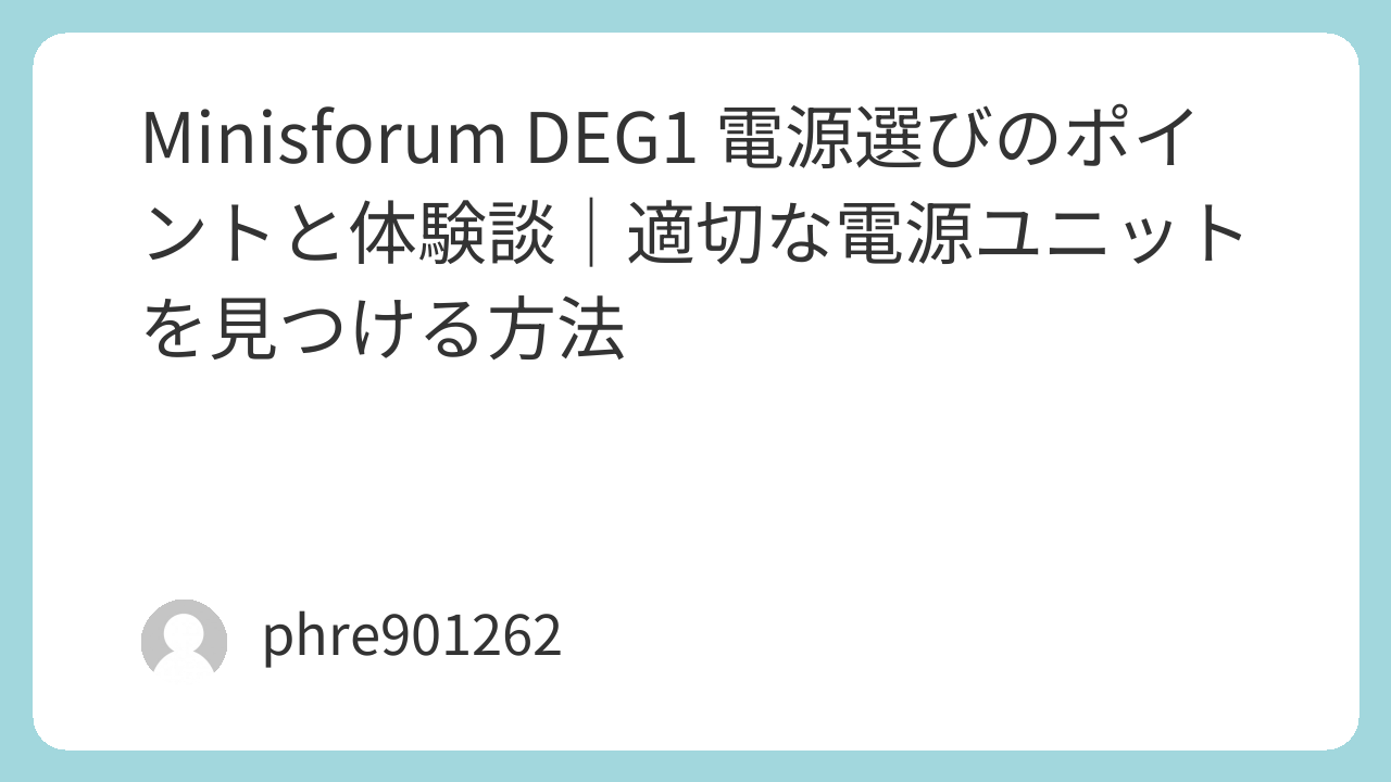 適切な電源ユニットを選ぶことで、DEG1を安定して運用でき、長期的な信頼性を確保できます。正しい電源を選ぶことが、快適なPCライフを支える重要な要素です。