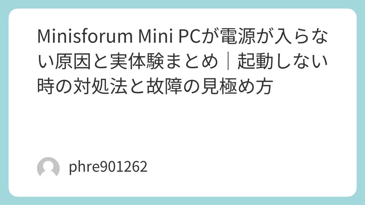 Minisforum Mini PCが電源が入らない原因と実体験まとめ|起動しない時の対処法と故障の見極め方