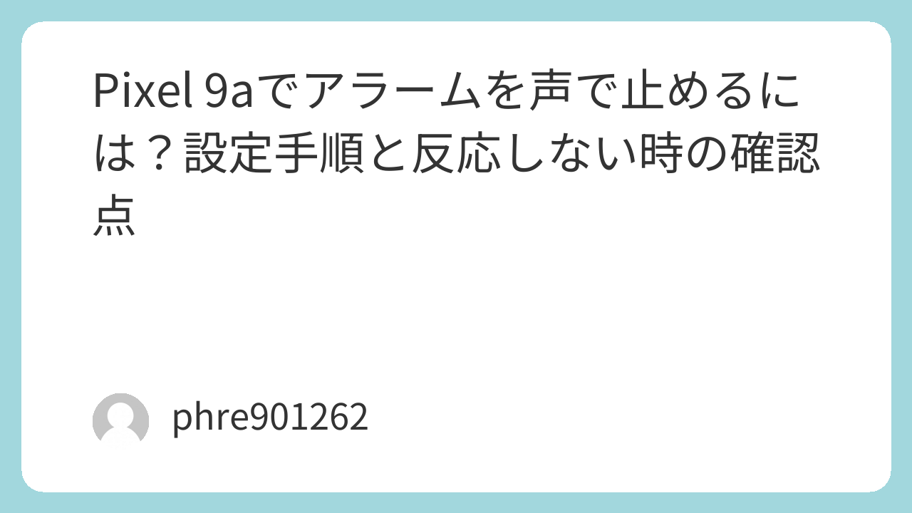 もし今うまく動いていないなら、難しく考えすぎる必要はありません。まずはクイックフレーズ、次に呼びかけ付きコマンド、そしてアシストアプリの状態を確認する。この順番で見直せば、かなりの確率で原因に近づけます。朝の数秒の手間を減らしたいなら、Pixel 9aのアラーム音声停止は、一度きちんと整えておく価値がある機能です。