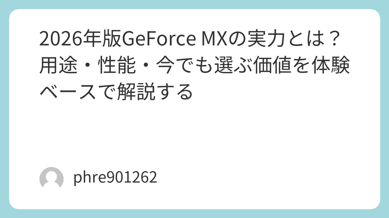 先に結論を書くと、GeForce MXは2026年の基準では主役ではありません。けれど、軽い写真編集、フルHD中心の動画編集、ブラウザを何枚も開く普段使い、そして軽量ゲームまで含めるなら、まだ「内蔵GPUだけのノートより一段ラク」と感じやすい立ち位置です。NVIDIA自身も過去にGeForce MX150を内蔵GPU搭載のベーシックノートより最大4倍高速と案内し、その後のGeForce MX550も写真・動画編集や内蔵GPUより良いゲーム性能を訴求していました。 (NVIDIA)