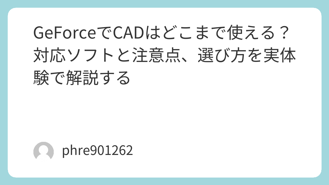 この記事では、私が「スペックだけ見ればいい」と考えていた状態から、「CADは使い方で正解が変わる」と考え直した流れをもとに、GeForceがCADに向く人、向かない人、選ぶときに外しにくい考え方をまとめます。