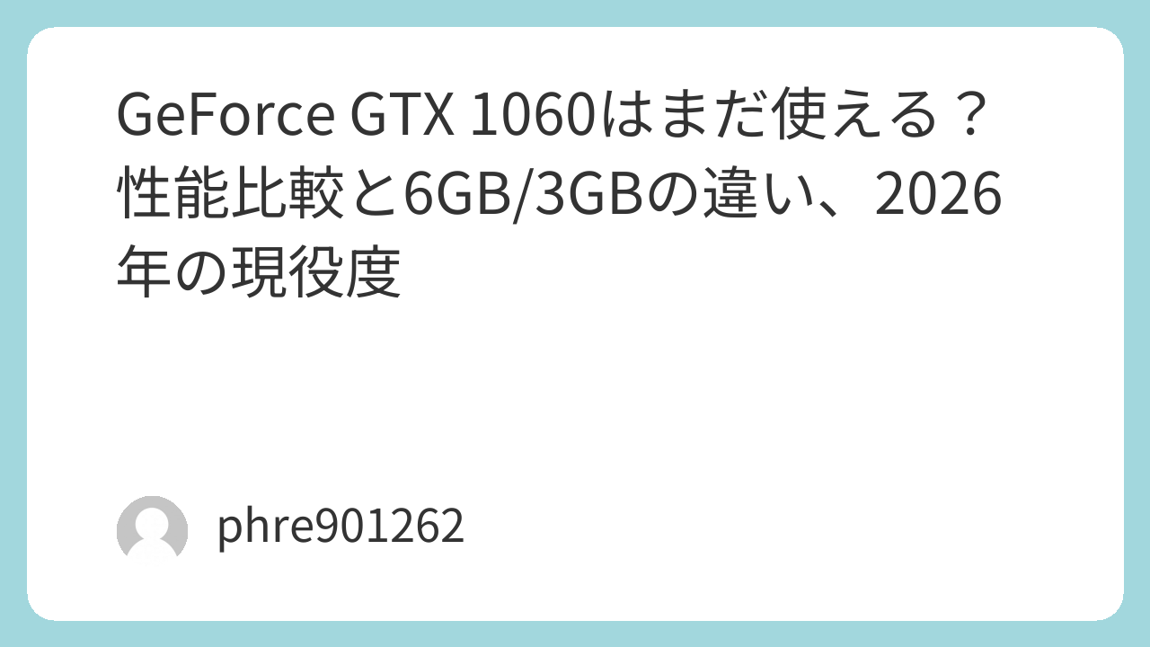 GeForce GTX 1060は、間違いなく長く愛されたGPUです。その評価は今でも変わりません。だからこそ、2026年になっても「まだ使えるのか」と検索され続けています。