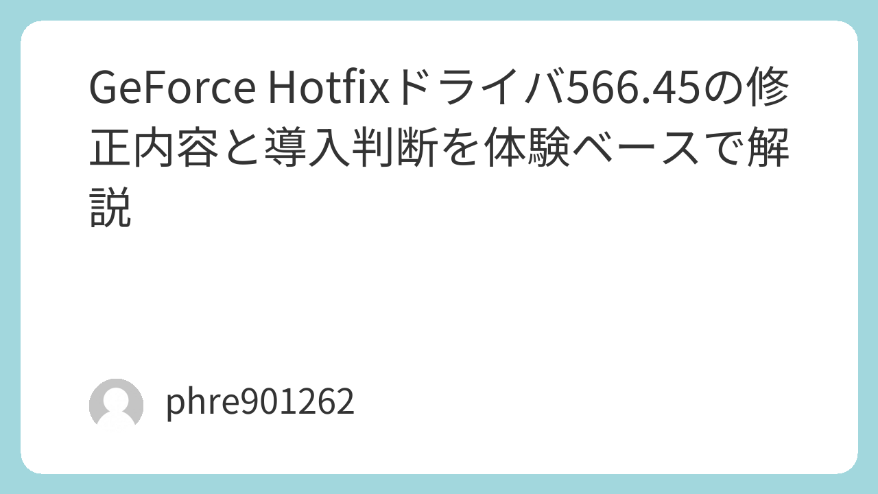 GeForce Hotfixドライバ566.45の修正内容と導入判断を体験ベースで解説