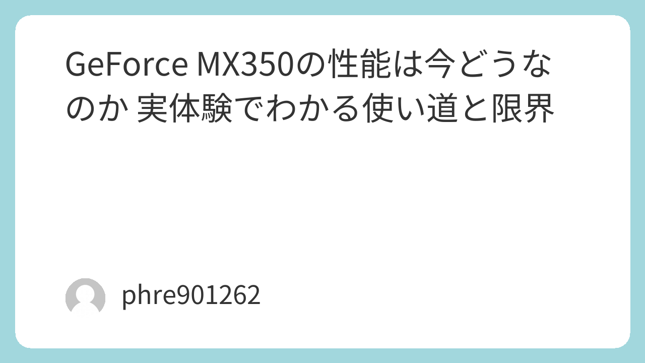 つまり、GeForce MX350は万人向けではありません。でも、合う人にはちゃんと合います。派手さはないのに、使い方しだいで妙に満足度が高い。そこが、このGPUのいちばん面白いところです。