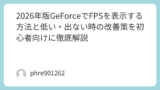 一方で、ゲームの重さを体感でしか判断できないとき、Alt+Rですぐ状況を見られるのはやはり便利です。だから完全に不要というより、“必要な日にだけ前に出てきてほしい機能”というのが本音に近いです。GeForce Overlayは、使いこなすと便利です。でも、放っておくと邪魔にもなる。そこがこの機能の、面白いところでもあり面倒なところでもあります。