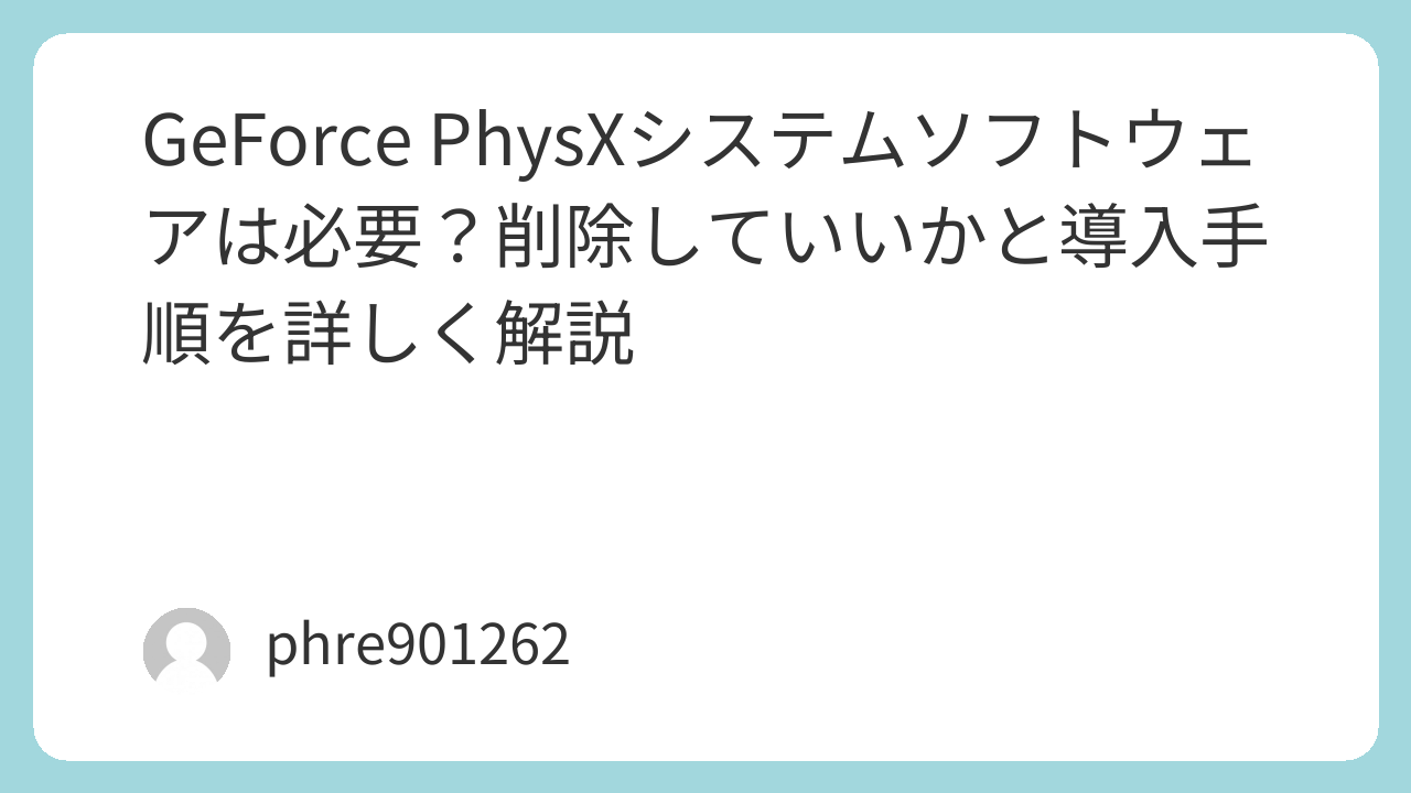 GeForce環境で出てくるPhysX System Softwareは、全員に必須ではありません。ですが、旧作を遊ぶ人にはまだ意味があります。だから判断は単純で、最新タイトル中心なら無理に触らない、古いゲームを入れるなら先に確認する。これで十分です。