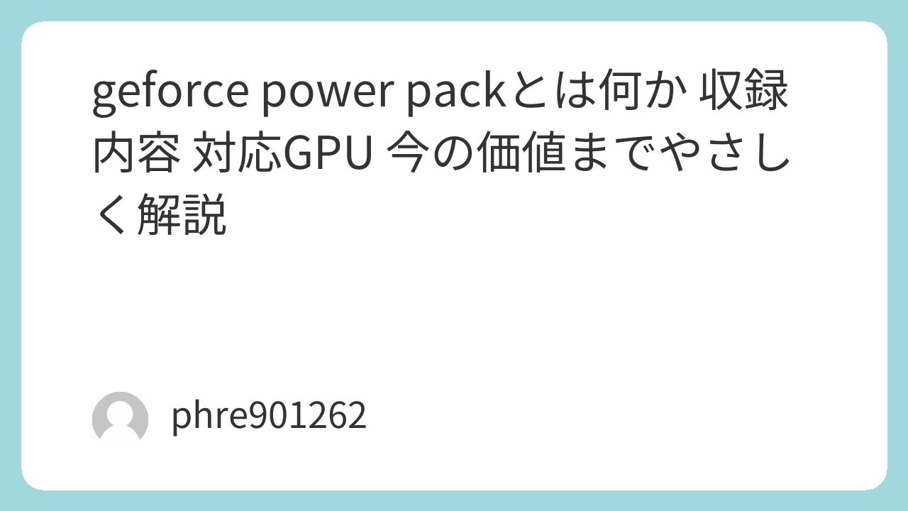 GeForce Power Packは、昔のNVIDIAが配布していた「PhysXやCUDAを体験してもらうための無料パック」です。今のGeForce RTX世代で使う便利機能の名前ではありません。検索していて電源設定やモバイルバッテリーの話が出てくると思ったのに、古い配布ページばかり出てきて戸惑った人は多いはずですが、その違和感は正しいです。実態は、2008年前後のゲームデモ、追加マップ、技術デモ、動画変換ソフト体験版などをひとまとめにした“見本市のようなパック”でした。 (4Gamer)