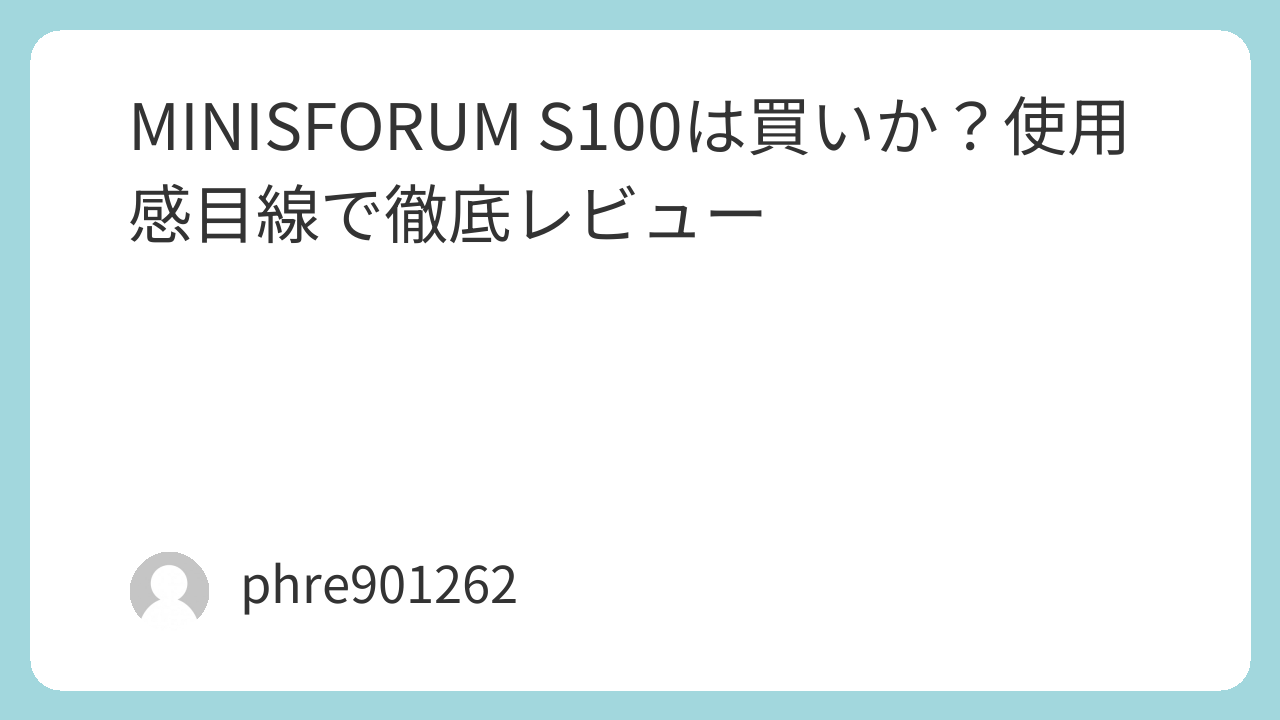 MINISFORUM S100は買いか?使用感目線で徹底レビュー