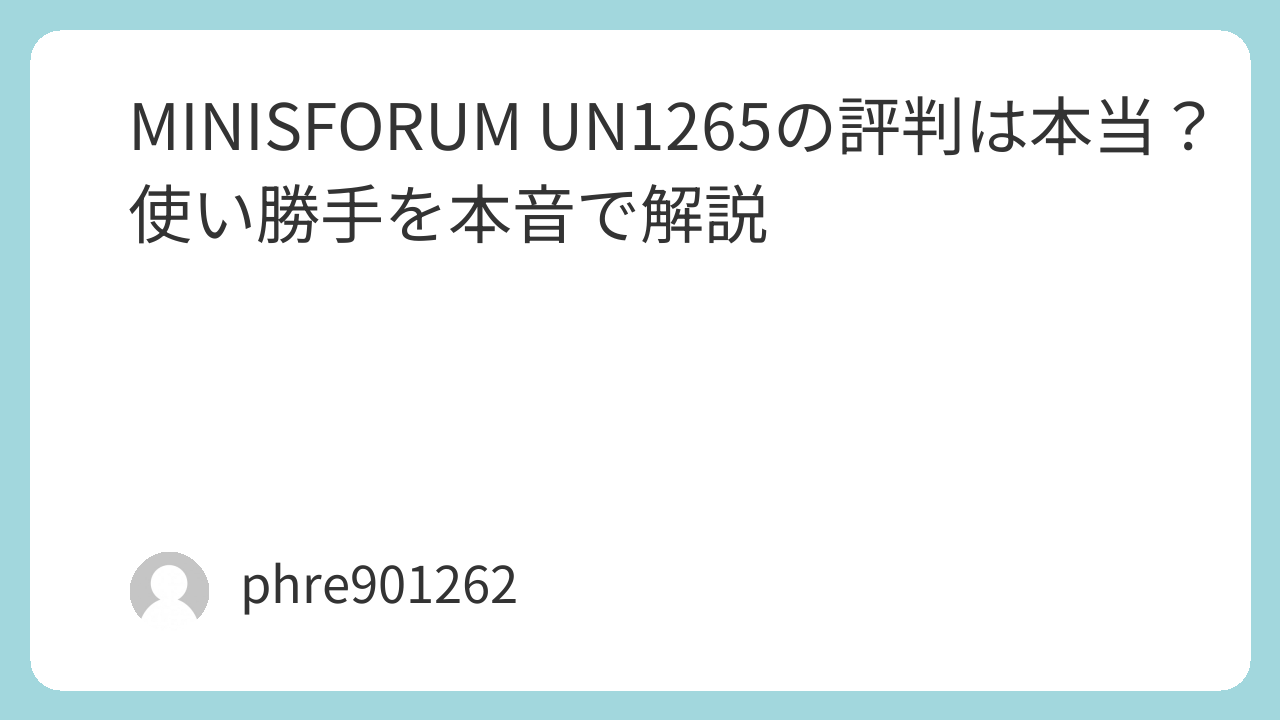私自身、ミニPCを選ぶときは「小さくても我慢が増えるなら意味がない」と考えています。その基準で見ても、MINISFORUM UN1265は、性能とサイズの落としどころがうまい製品です。重いゲーム用途を求めないなら、日常の仕事や作業を静かに支えてくれる相棒として、十分に検討する価値があります。