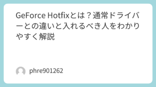 「geforce hotfix display driver」と検索するとき、知りたいことはかなりはっきりしています。名前の意味より先に、自分の不具合に効くのか、入れて大丈夫か、通常のドライバーとどう違うのか。ここが分からないまま更新すると...