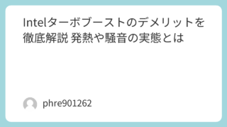 Intelターボブーストのデメリットを徹底解説 発熱や騒音の実態とは のターボブーストは、CPUに負荷がかかったとき、一時的に動作クロックを引き上げて処理を速くする機能です。スペック表だけを見ると便利な仕組みに思えますが、実際に使ってみると、良い面ばかりではありません。むしろノートパソコンでは、熱、ファンの音... 2026.03.16 未分類