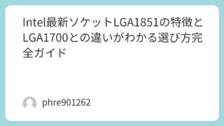 Intel最新ソケットLGA1851の特徴とLGA1700との違いがわかる選び方完全ガイド 「Intelの最新ソケットは何なのか」。この疑問に対して、いま最初に押さえておきたい答えはLGA1851です。CPUを買い替えたい人、自作PCを組み直したい人、いま使っているLGA1700環境から乗り換えるか迷っている人にとって、ここを曖昧... 2026.03.16 未分類