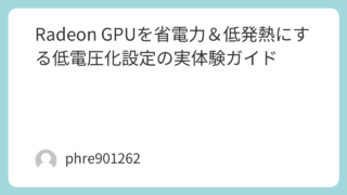 Radeon GPUを省電力&低発熱にする低電圧化設定の実体験ガイド はじめにRadeon GPUの低電圧化設定(Undervolting)は、ゲームや高負荷作業での電力消費を減らし、温度の上昇を抑えるための有効な方法です。特に、長時間の使用や高負荷時に発生する熱問題を軽減するため、多くのユーザーが実際に試し... 2026.03.16 未分類