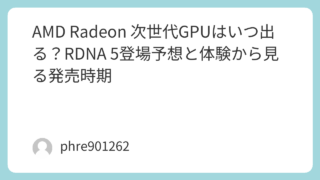 AMD Radeon 次世代GPUはいつ出る?RDNA 5登場予想と体験から見る発売時期 1. はじめに:次世代Radeonを待つ理由私は長年、ゲームと動画編集のためにを使用してきました。このGPUは、4Kのゲームや高負荷の作業でも非常に高いパフォーマンスを発揮しており、非常に満足しています。しかし、最新のゲームやアプリケーショ... 2026.03.16 未分類