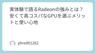 実体験で語るRadeonの強みとは?安くて高コスパなGPUを選ぶメリットと使い心地 はじめに:Radeon GPUを選んだ理由私が**Radeon(アールエーディオン)**のグラフィックカードを選んだのは、価格と性能のバランスが非常に魅力的だったからです。実際に自作PCにRadeonのGPUを搭載してから半年が経過しました... 2026.03.16 未分類