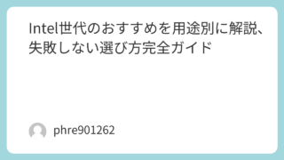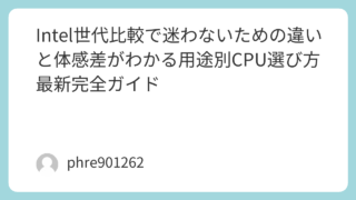 Intel世代のおすすめを用途別に解説、失敗しない選び方完全ガイド IntelのCPUは、見た目の名前が似ているのに、使ってみると快適さがまるで違います。店頭や通販で見比べていると「第12世代でも十分なのか」「新しい世代のほうが安心なのか」「結局どれを選べば後悔しないのか」と迷いやすいものです。実際、私もI... 2026.03.16 未分類